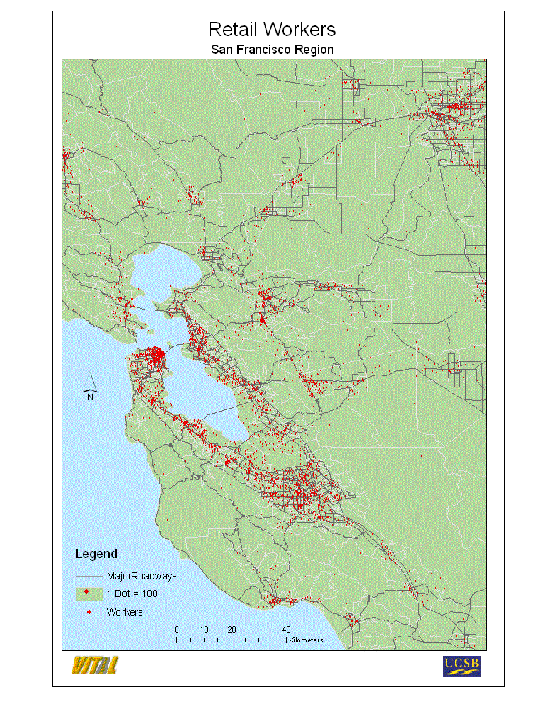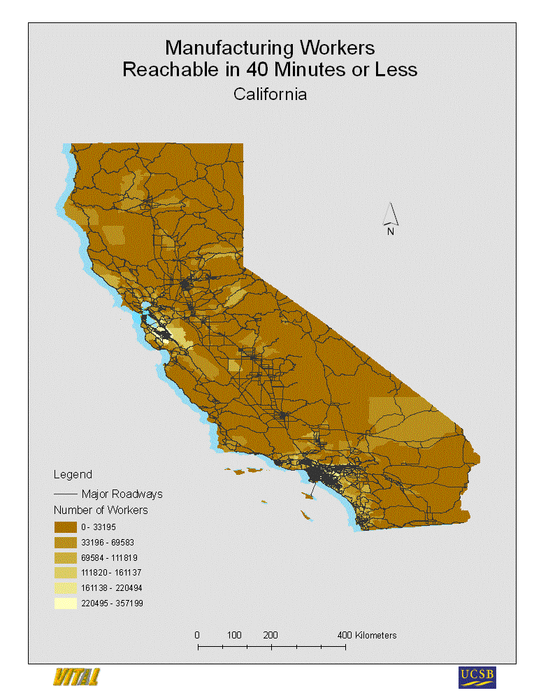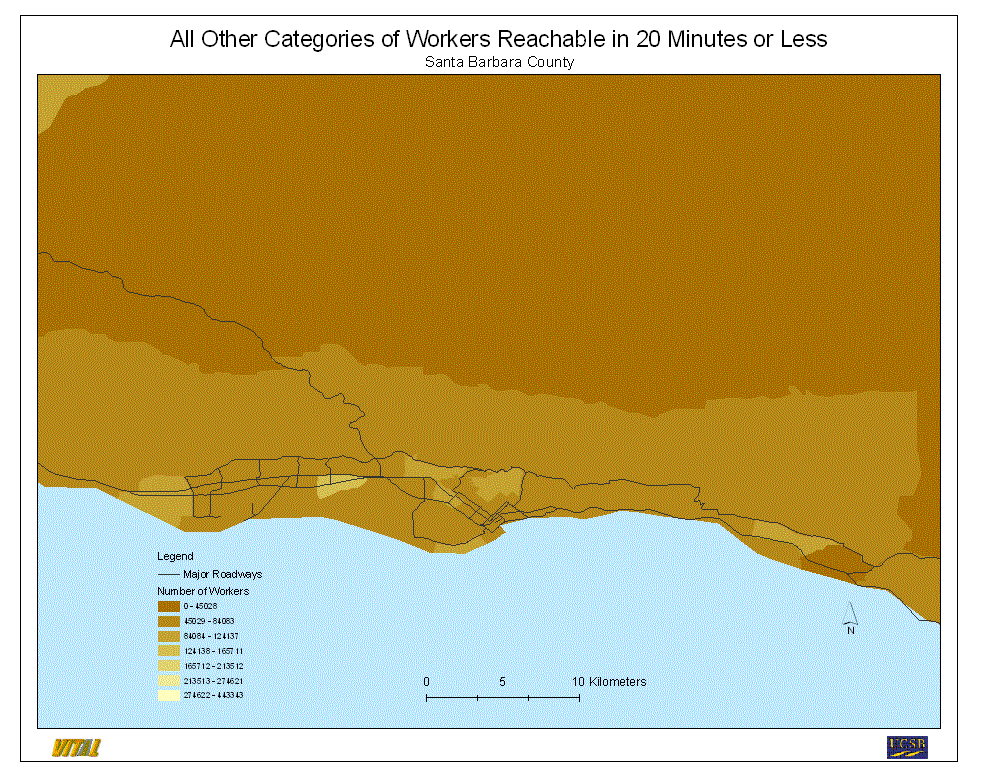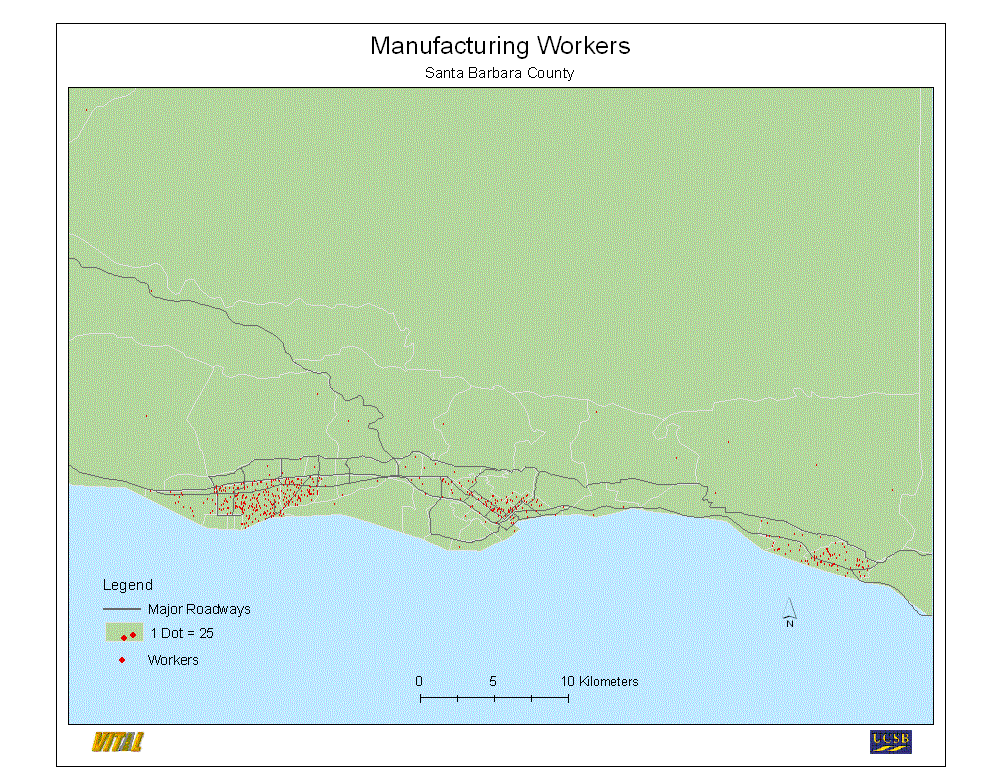 1. Numbers of workers in the following categories are mapped at their place of work, based on NAICS (formerly SIC) encoded data from the Census Transportation Planning Package (CTPP):